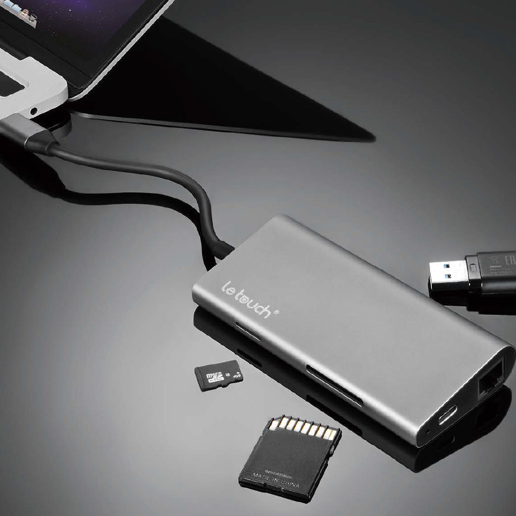 Este adaptador con acabados en aluminio pulido, cuenta con 8 puertos que permiten conectar los dispositivos que necesitas simultáneamente y sin perder la capacidad de cargar tu macbook al mismo tiempo.